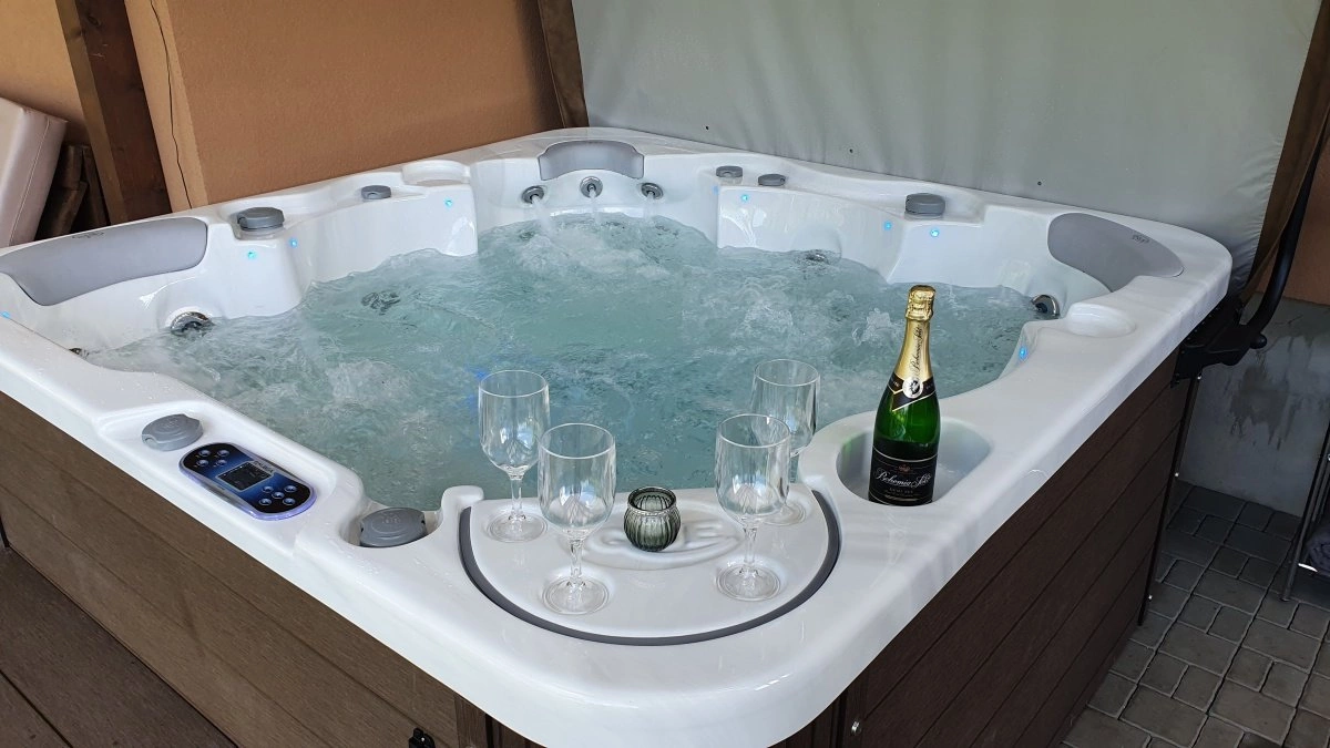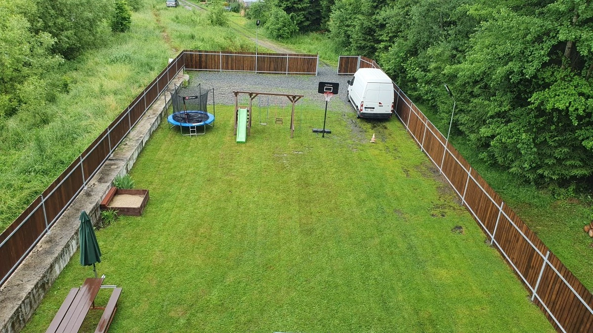 Na oplocené zahradě (500 m²) mají hosté k dispozici zastřešenou terasu s vířivkou pro 5 osob a venkovním paletovým nábytkem. Bude-li mít zákazník o vířivku zájem, je potřeba tuto skutečnost nahlásit minimálně týden dopředu. Poplatek na místě za vířivku činí 7000,-Kč/týden nebo 1500,-Kč/den. Na zahradě samotné je k dispozici stolní tenis, basketbalový koš, dětská trampolína, houpačky, skluzavka a pískoviště. Za zahradou se nachází ohniště s lavičkami. Příznivci grilování si mohou vypůjčit přenosný gril na dřevěné uhlí (poplatek 250,-Kč/pobyt). Zahrada je monitorována kamerovým systémem. Oplocené parkování. 100 m od chalupy vede lokální železniční trať (ideální spojení do Vyššího Brodu nebo do Lipna nad Vltavou).