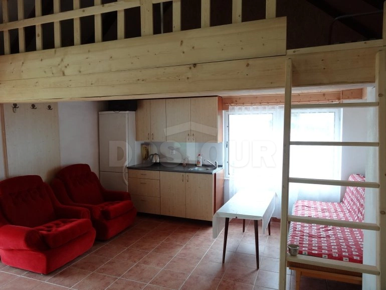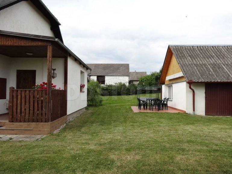 Pěkná účelně zařízená 2-pokojová chalupa (60 m2) pro 6 až 8 osob v malé obci. Veranda. V průchozí kuchyni (15 m2) je k dispozici el. plotna (4 plotýnky), el. trouba, lednička s mrazícím boxem, mikrovlnná trouba, překapávač, topinkovač, el. konvice, jídelní kout pro 4 osoby, kamna a gauč. Obytná ložnice (17 m2) je vybavena sedací soupravou, TV a 2 lůžky vedle sebe. V chalupě se dále nachází koupelna (sprchový kout, umyvadlo, bojler 80 l, voda se dohřívá 2x denně), samostatné WC a ložnice (20 m2) s dvojlůžkem, patrovou postelí a dětskou postýlkou. Nekuřácký objekt. El. topení + dřevem v kamnech. Za chalupou se nachází zahradní domek (stodola), který je vybaven kuchyňským koutem (lednička s mrazícím boxem, el. konvice), posezením a podkrovní galerií se 2 matracemi (příkrý žebřík). Zahradní domek není vytápěn. Na oplocené zahradě (300 m2) je k dispozici zahradní kruhový bazén (průměr 3,5 m), terasa s venkovním posezením a houpací lavicí, ohniště a pískoviště. Oplocené parkování. Povolena jsou pouze malá psí plemena (do 30 cm).