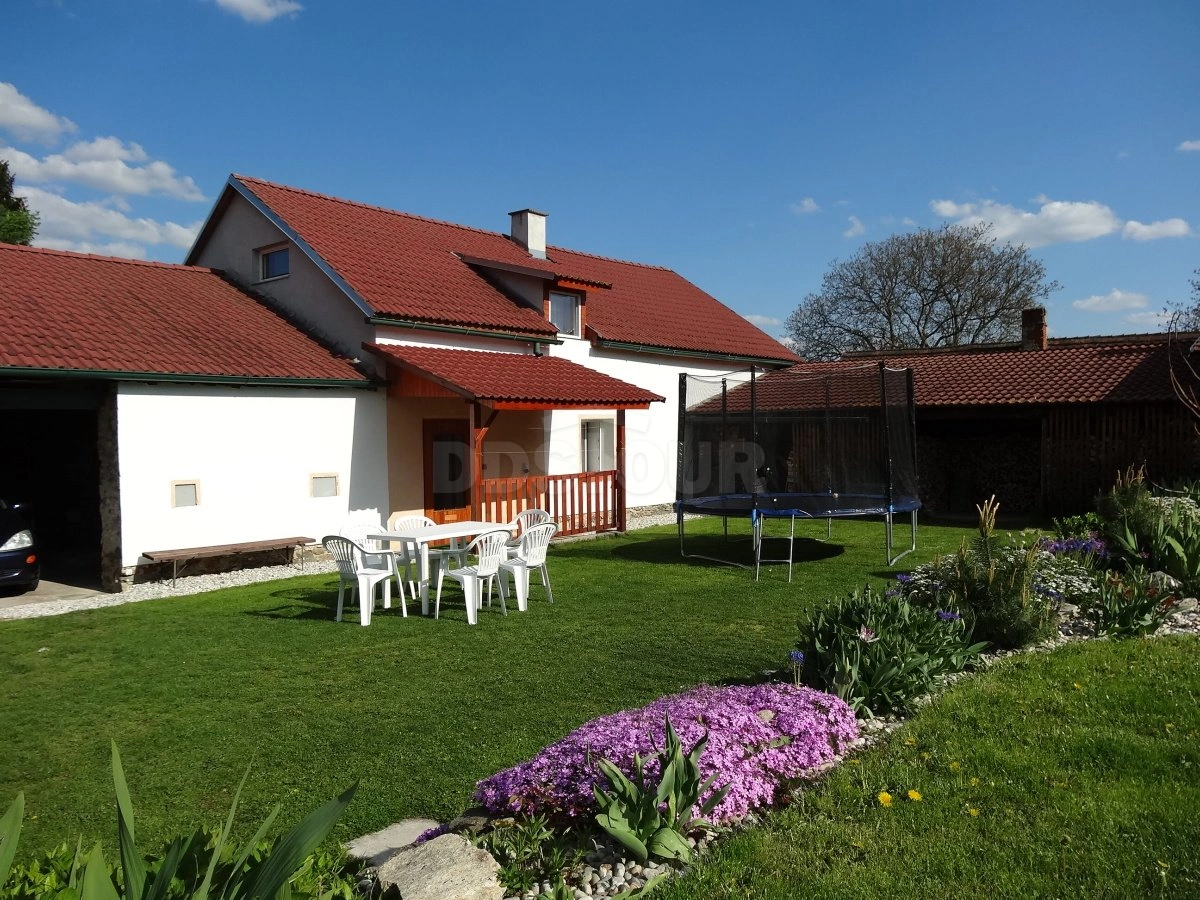 Chalupa resp. zcela samostatná 3-pokojová část (cca. 100 m2) zrekonstruované zemědělské usedlosti pro 7 osob leží na krásné samotě s výhledy do okolí. Chodba. V průchozí kuchyni (18 m2) je k dispozici el. sporák (4 plotýnky, trouba), lednička, překapávač, mikrovlnná trouba, el. konvice a jídelní kout. V objektu pouze užitková voda. Na kuchyni navazuje obytná místnost (30 m2), ve které je k dispozici sedací souprava, krbová kamna a TV. Koupelna se sprchovým koutem, wc a umyvadlem (u umyvadla jen studená voda). Z chodby vede schodiště do podkroví, kde se nacházejí 2 samostatné ložnice: 1/ (9 m2) s dvojlůžkem (140 cm široké) a 2/ (30 m2) s 5 lůžky. Samostatné WC. Vytápění krbovými kamny. Nekuřácký objekt. Na uzavřeném dvoře a přilehlém neoploceném pozemku (2000 m2), který je spoluužíván s majitelem, je k dispozici stolní tenis, trampolína (Ø 3 m), hřiště pro míčové hry, venkovní posezení a přenosný gril. Oplocené parkování. Majitel vlastní psa a kočku, v oddělené části chová ovce a drůbež.