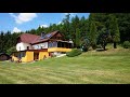 Pěkně zařízený prostorný 3-pokojový apartmán na chalupě (90 m²) se samostatným vchodem leží na kouzelném místě u lesa na samotě s nádherným výhledem kousek od osady Slavkov a nabízí ubytování pro max. 8 osob. Vstup do apartmánu je ze zadní části chalupy. Vstup je přes zastřešenou terasu do jídelny (do zasklené verandy), kde se nachází jídelní kout a krb. Z jídelny se dále vstupuje do obytné kuchyně, ve které je k dispozici el. sporák (4 varné jednotky, trouba), lednička s mrazícím boxem, mikrovlnná trouba, myčka na nádobí, el. konvice, stůl, 4 židle, sedací kout a TV+SAT. V přízemí apartmánu se dále nachází koupelna (sprchový kout, WC, umyvadlo) a ložnice s dvojlůžkem a dětskou postýlkou. Z obytné kuchyně vedou mírně příkřejší schody do podkroví (částečně snížené stropy), kde se nachází 2 samostatné ložnice: 1/ s dvojlůžkem a lůžkem a 2/ se 3 lůžky. V apartmánu je zavedeno připojení na internet (WI-FI). V apartmánu je k dispozici pračka. Centrální topení (zasklená veranda vytápěna lokálně). Ve sníženém přízemí chalupy (samostatný vchod) je hostům plně k dispozici vnitřní bazén (6 x 3 x 1,5 m), který je celoročně vyhříván až na 27°C. U bazénu se nachází rovněž vířivka pro 4 osoby, sauna pro 6 osob, sprcha a WC. Na rozlehlé neoplocené zahradě (2500 m²) se nachází zastřešená terasa s venkovním posezením, další venkovní posezení, 3 lehátka, trampolína (průměr 3,6 m), přenosný gril, ohniště a pískoviště. Neoplocené parkování. V druhé části chalupy (samostatný vchod z opačné strany) bydlí ubytovatel (manželský pár). Ubytovatel neporušuje soukromí hostů a do apartmánu (do ubytovací části) nevstupuje! Ubytovatel vlastní 2 psy.