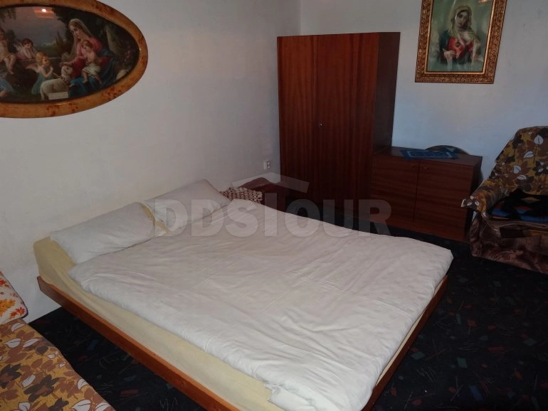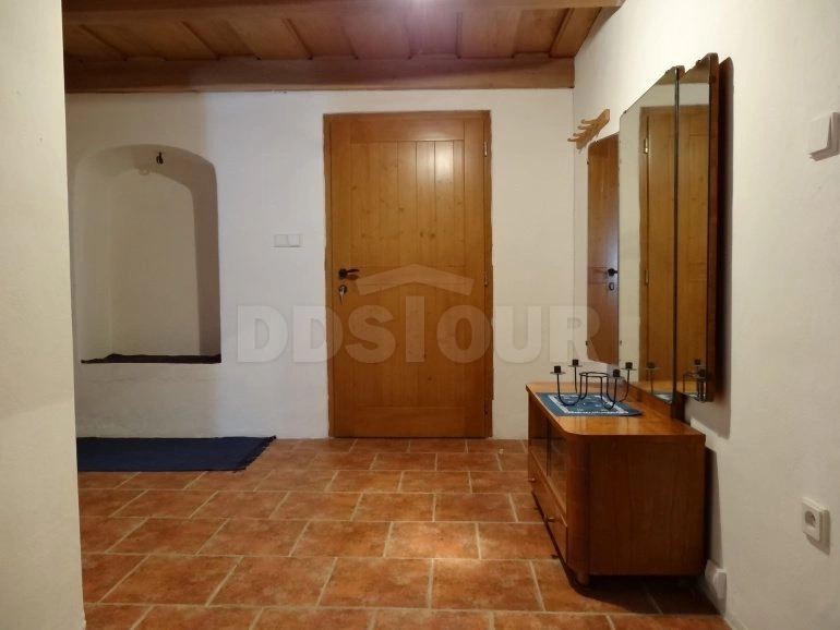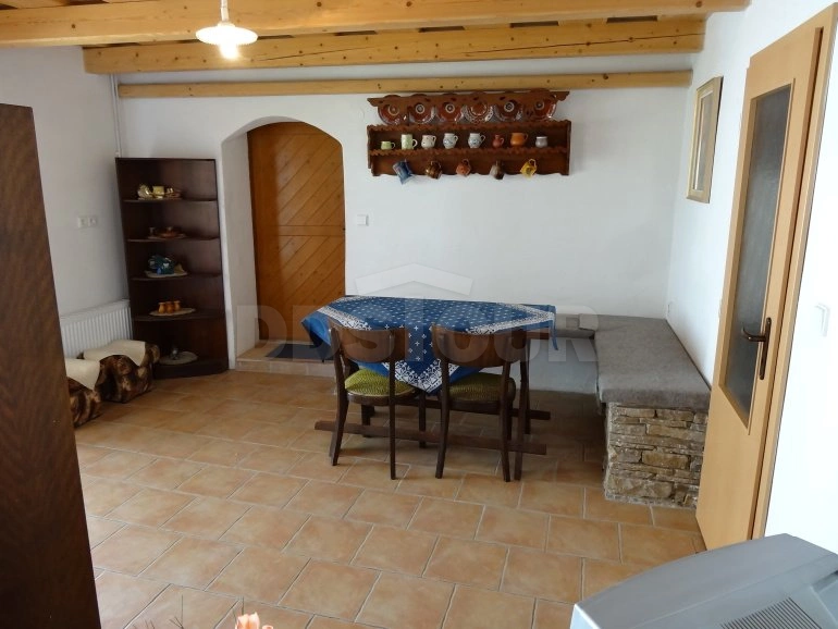 Pěkně zařízená, slováckými prvky zdobená 4-pokojová chalupa (95 m2) nabízí pronájem pro 8 osob v centru malé obce. Chodba. V obytné kuchyni (32 m2), která je opticky rozdělena na 2 části, je k dispozici el. sporák (4 varné jednotky, trouba), 2 ledničky, mikrovlnná trouba, el. konvice, 2 jídelní kouty a TV; vstup na uzavřený dvůr. Sociální zařízení tvoří malá chodbička s umyvadlem, z které se vstupuje do koupelny se sprchovým koutem a na 2 samostatná WC (zahrnovací dveře) – bojler 180 l. 3 ložnice: 1/ (16 m2) se 3 lůžky, 2 křesly a stolkem, 2/ (11 m2) s dvojlůžkem (šířka 140 cm) a 3/ (16 m2) se 2 lůžky, rozkládacím gaučem pro 1 osobu, 2 křesly a stolkem; vstup na dvůr. Centrální vytápění. Nekuřácký objekt. Na uzavřeném dvorku (180 m2) je k dispozici zahradní nábytek a přenosný gril. Oplocené parkování.